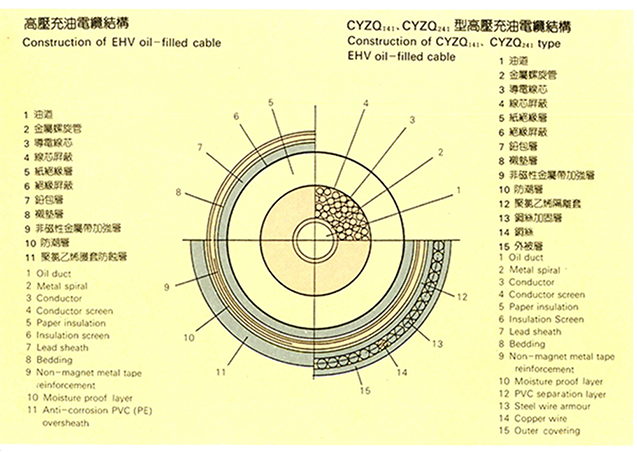 Extra-high voltage single-core self-contained lead-sheathed oil-filled power cables with special features such as stability in properties,large transmission capacity, high voltage withstanding level, low dielectric loss, long services life, etc. It’s widely used in the voltage of 66kV and above(EHV), power transmission and distribution system in the city; outlet lines of thermal or hydro power station; connection across the lakes and seas. |